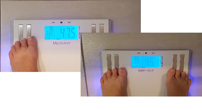 Bien au contraire, j’ai perdu plus de 2kg (désolée pour cette photo ignoble de mes pieds !!!!)