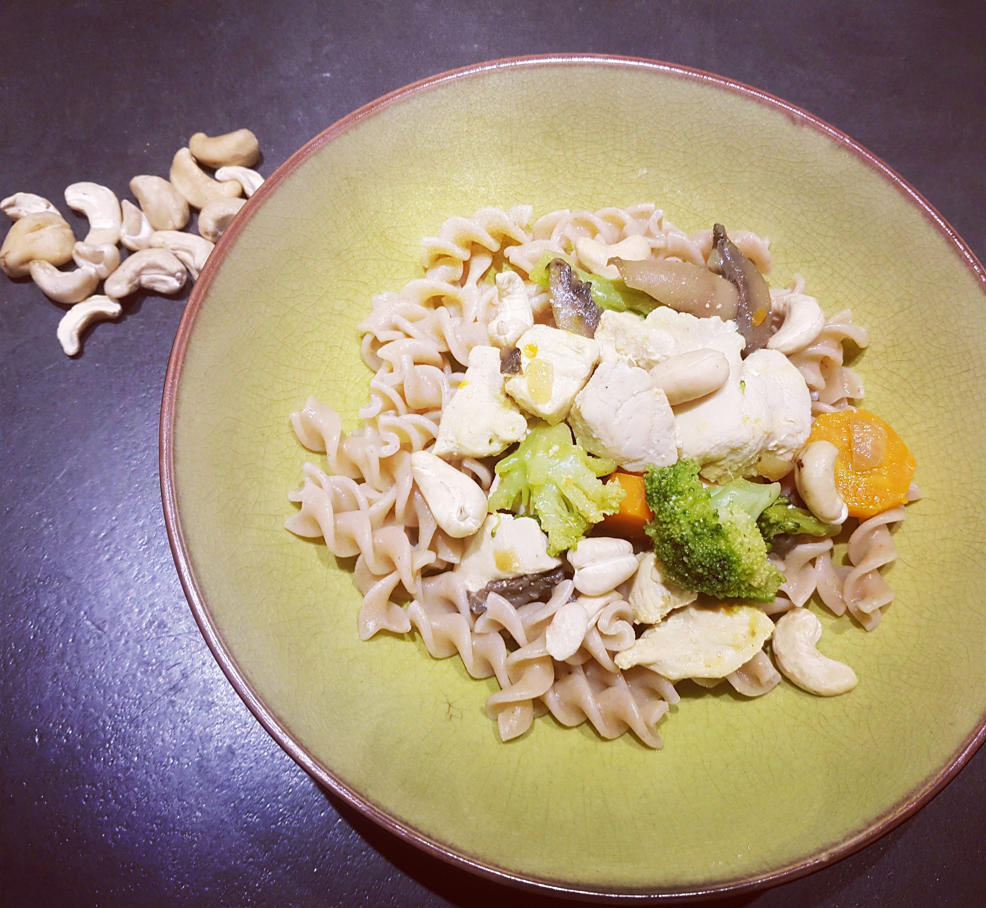 - Rajouter 80gr de noix de cajou er servez avec des pâtes complètes par exemple .