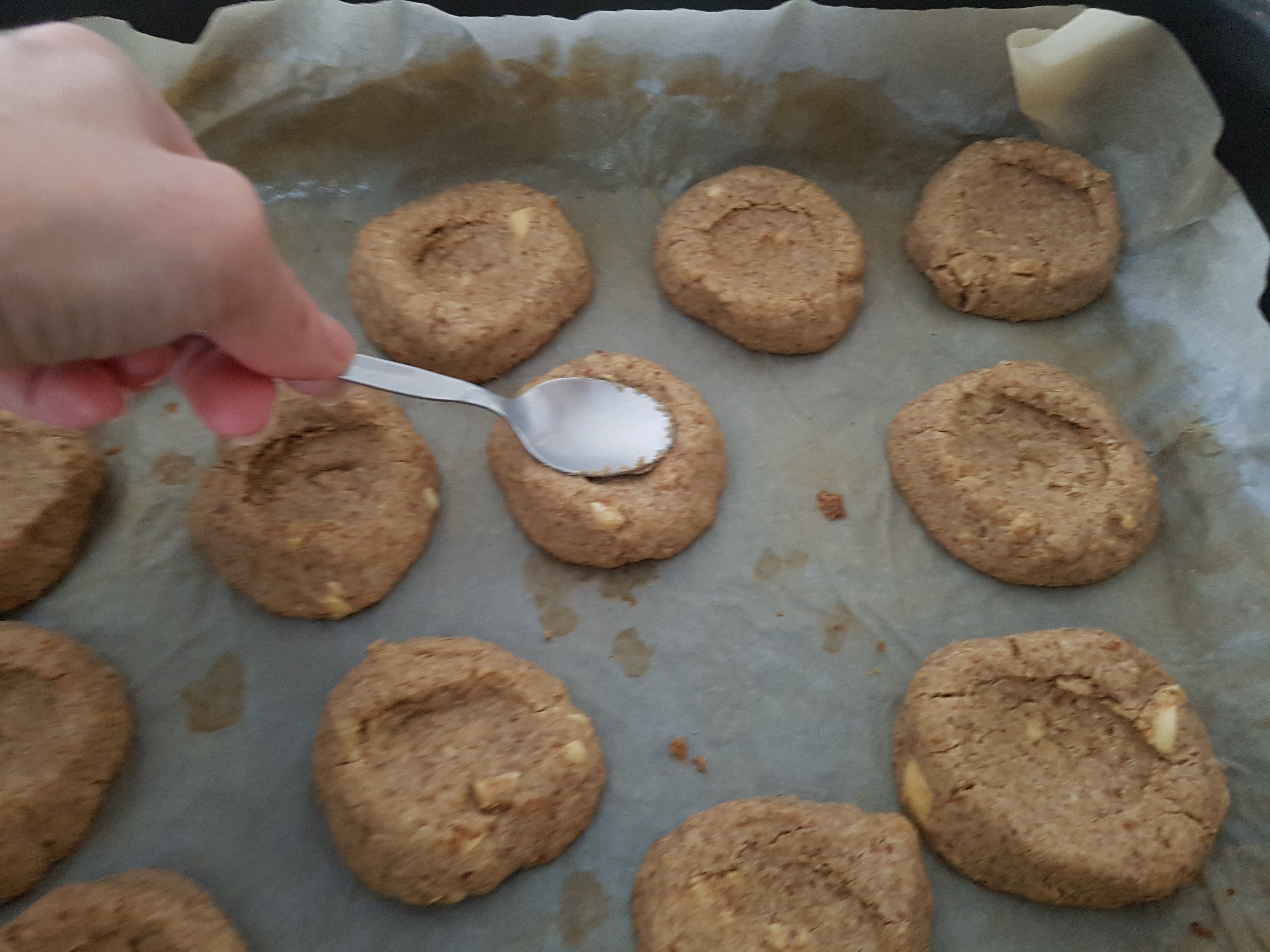 - Faire des boules moyennes que vous disposerez sur une feuille de cuisson. Creusez un petit cratère au centre.