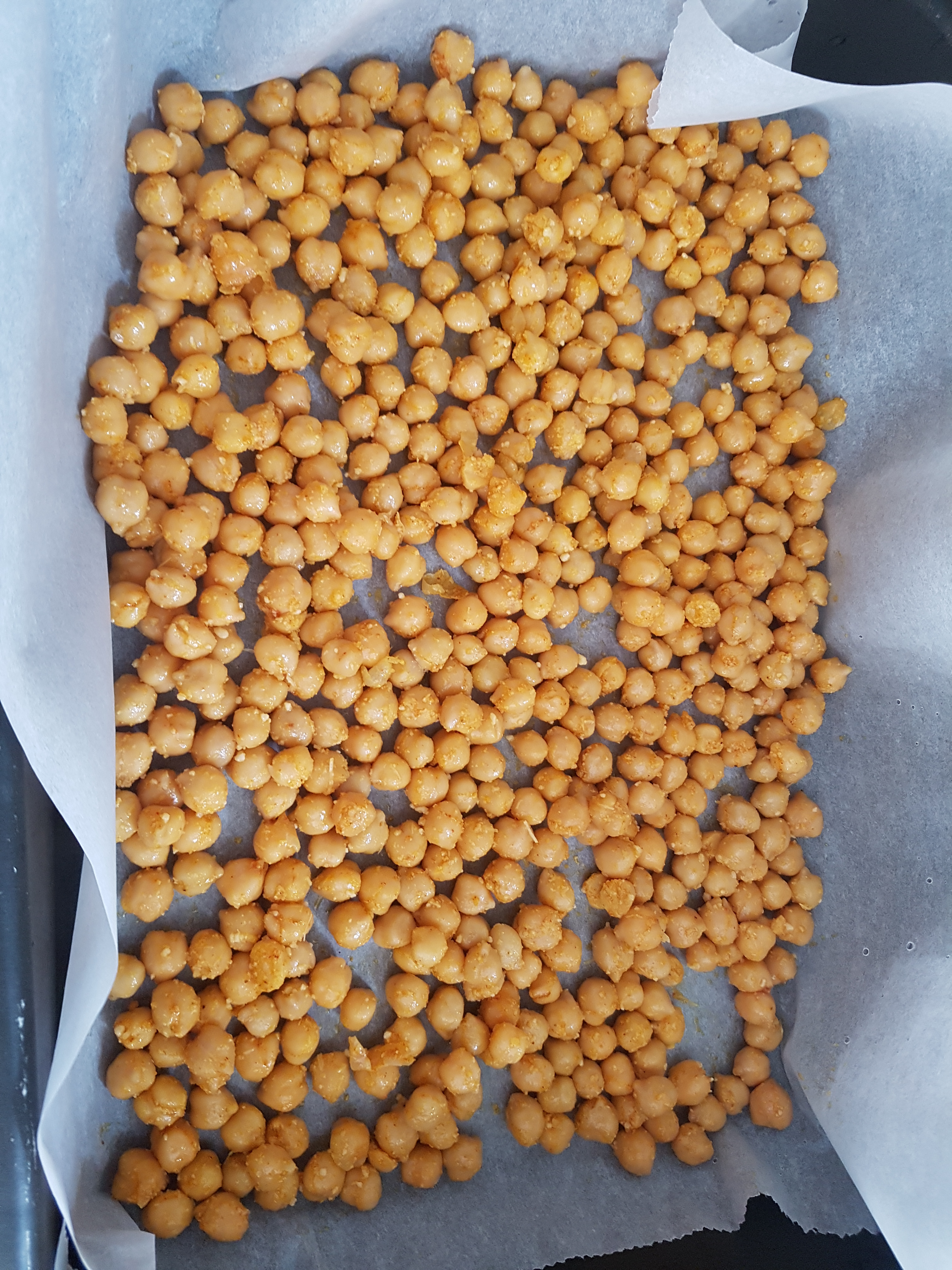 - Placer les pois chiches sur une plaque recouverte de papier cuisson et mettre au four durant 35 min