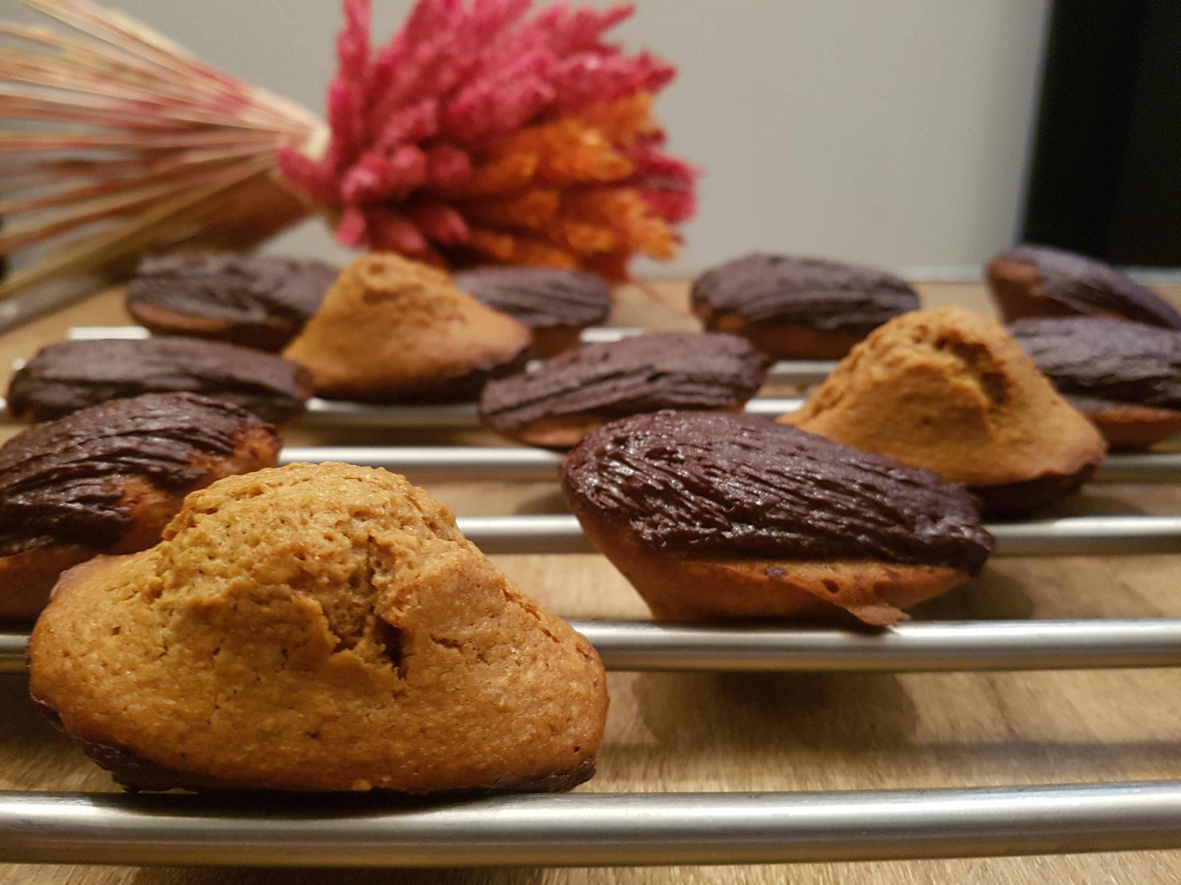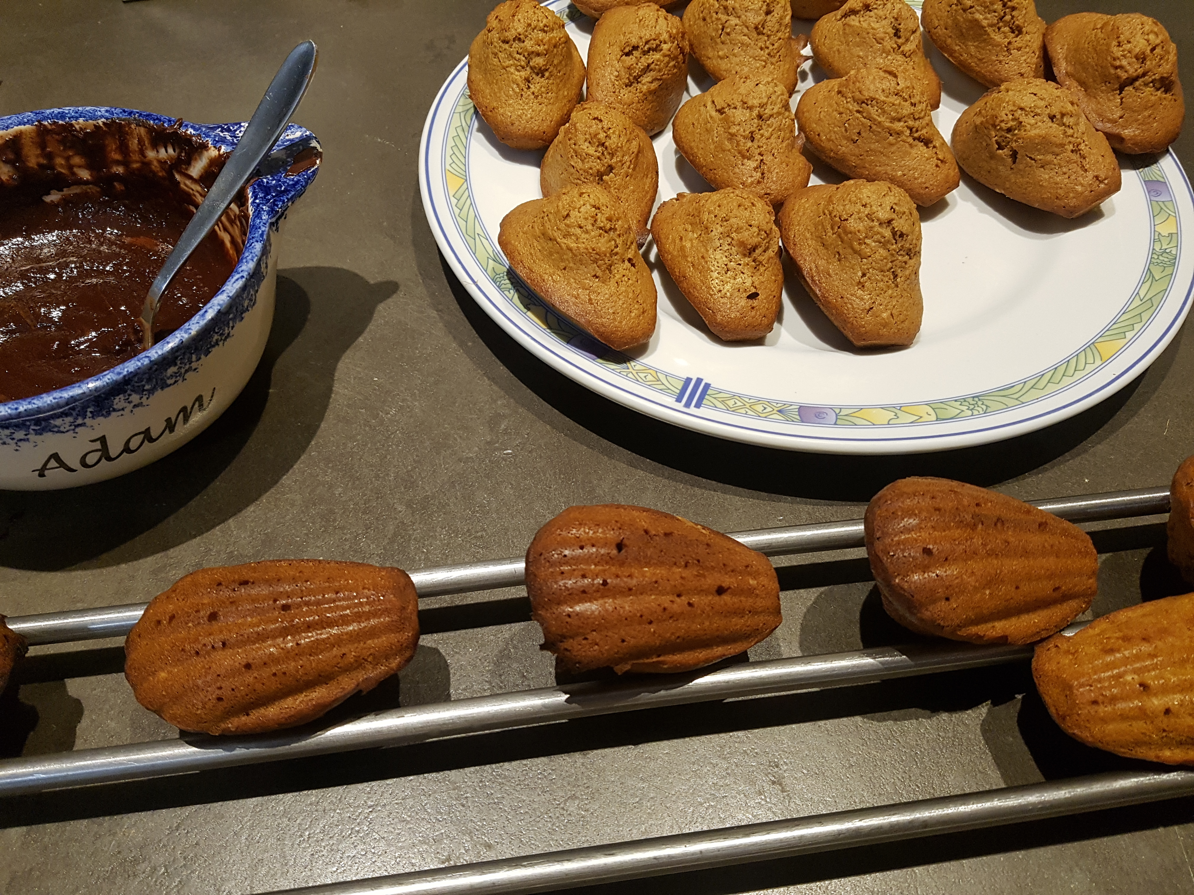 J ai préparé des petites madeleines pour le petit dejeuner et gouter des enfants, avec une base chocolat of course .