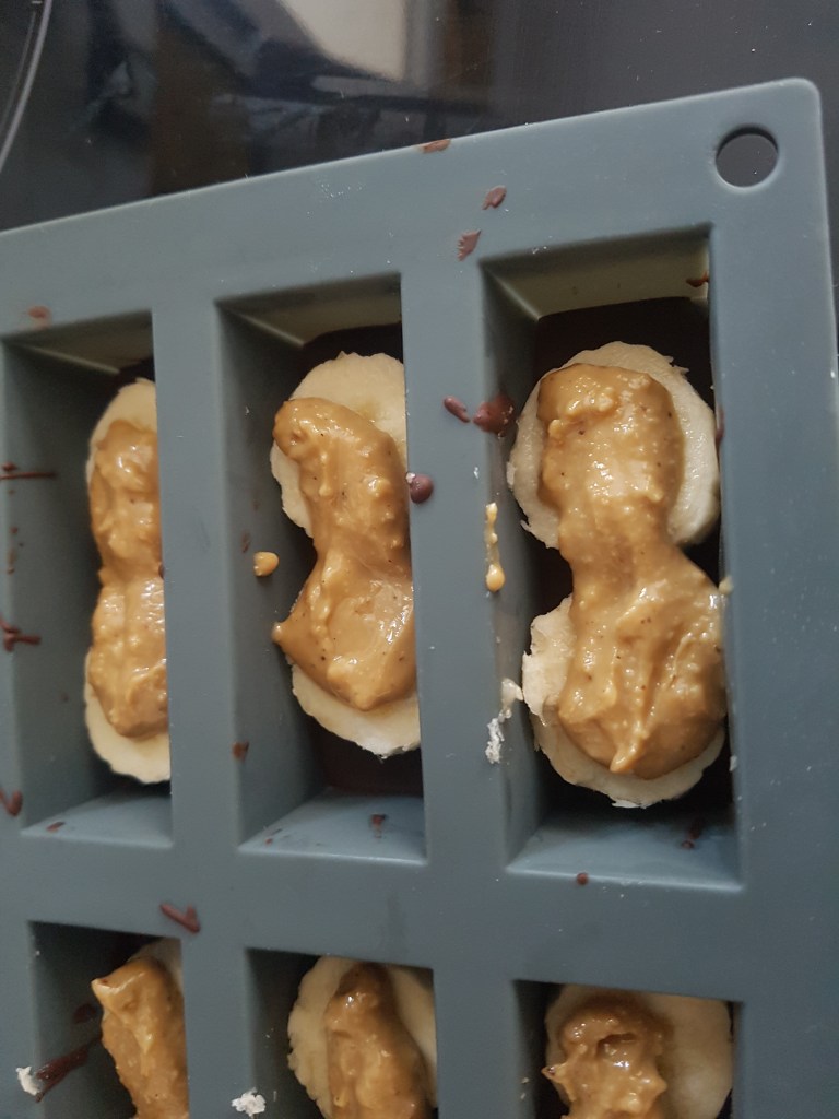 – Puis j ai disposé dans chaque moule 1cac de beurre de cacahuète sans sucre ajouté de chez @jeanherve_jeanherve