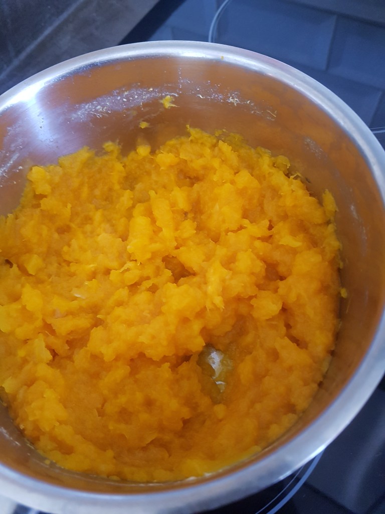 -Cuire à la vapeur ou dans une casserole d’eau 250gr de butternut (poids cru)