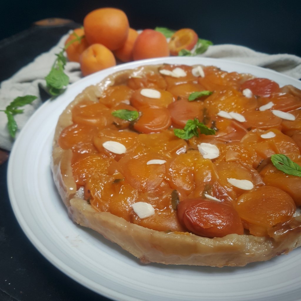 J’aime tellement la tarte tatin aux pommes que j’ai eu envie de tenter une variante avec les fruits de saison et j’ai eu une préférence pour les abricots. J’adore l’association abricot menthe, en verrine avec un yaourt par exemple. Une tarte tatin un peu plus légère que la classique et tout aussi gourmande
