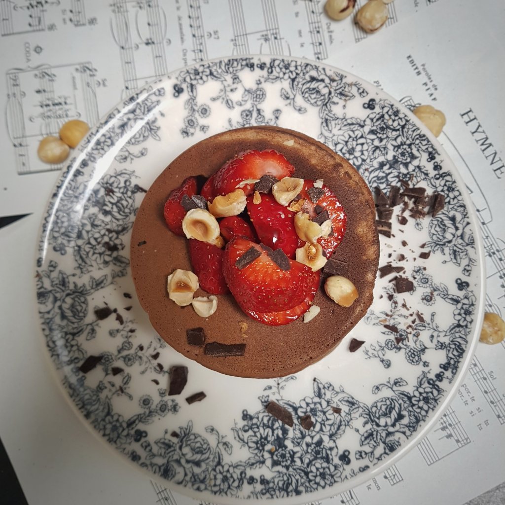 une recette à la farine de Sarrasin. C’est la première fois que j’ajoute du cacao dans une pâte à pancakes.